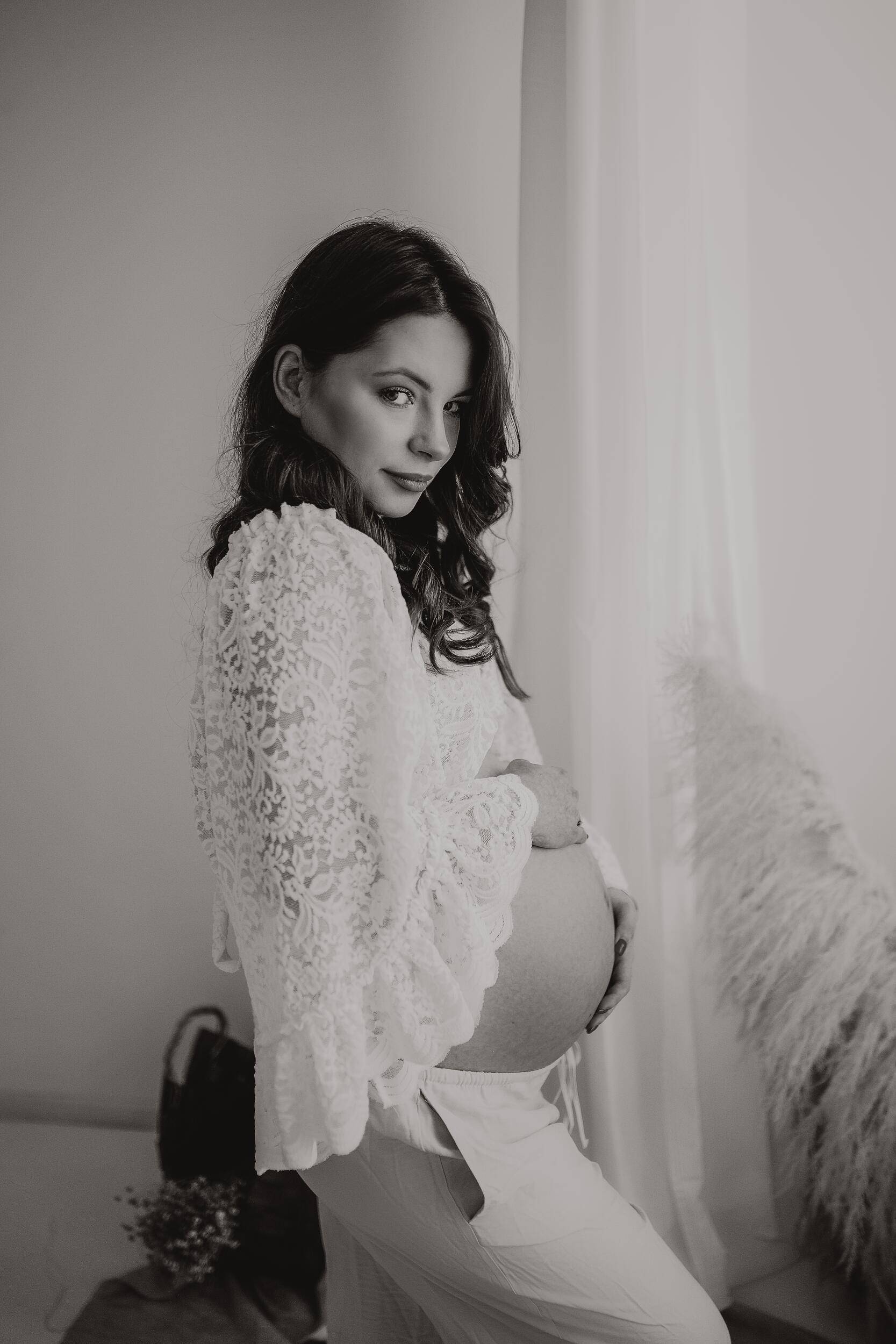 To Tobie pozostawiam wybór, czy chciałabyś przyjść na sesję z partnerem/rodziną. Moim zdaniem warto jednak zabrać przyszłego tatę – będzie przy Tobie osoba, przy której czujesz się dobrze i bezpiecznie, można stworzyć dodatkowe kadry i inne pozy np. z całowaniem brzuszka. Pamiętaj, że nawet jeśli przyjdziecie we dwoje lub rodzinnie – i tak będziesz miała wykonane portrety i zdjęcia, na których jesteś tylko Ty.