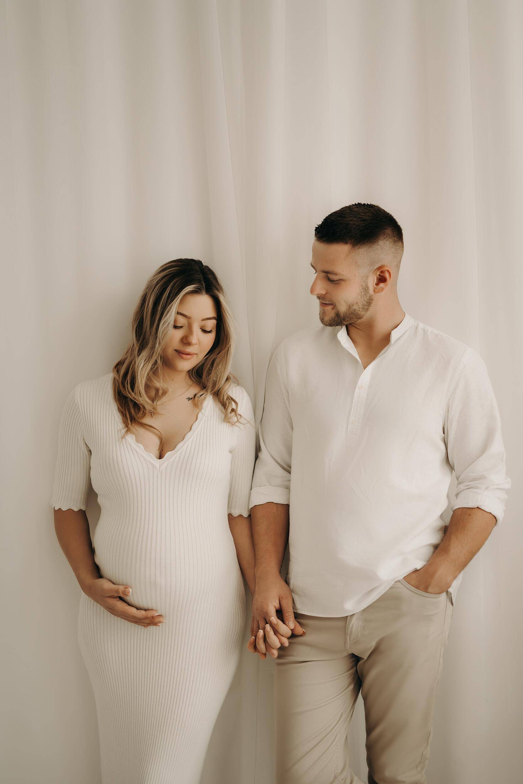 - Sesja ciążowa z partnerem: Doskonała okazja, by pokazać Waszą wspólną miłość, czułe gesty i radość z tego, że niedługo Wasza rodzina się powiększy.